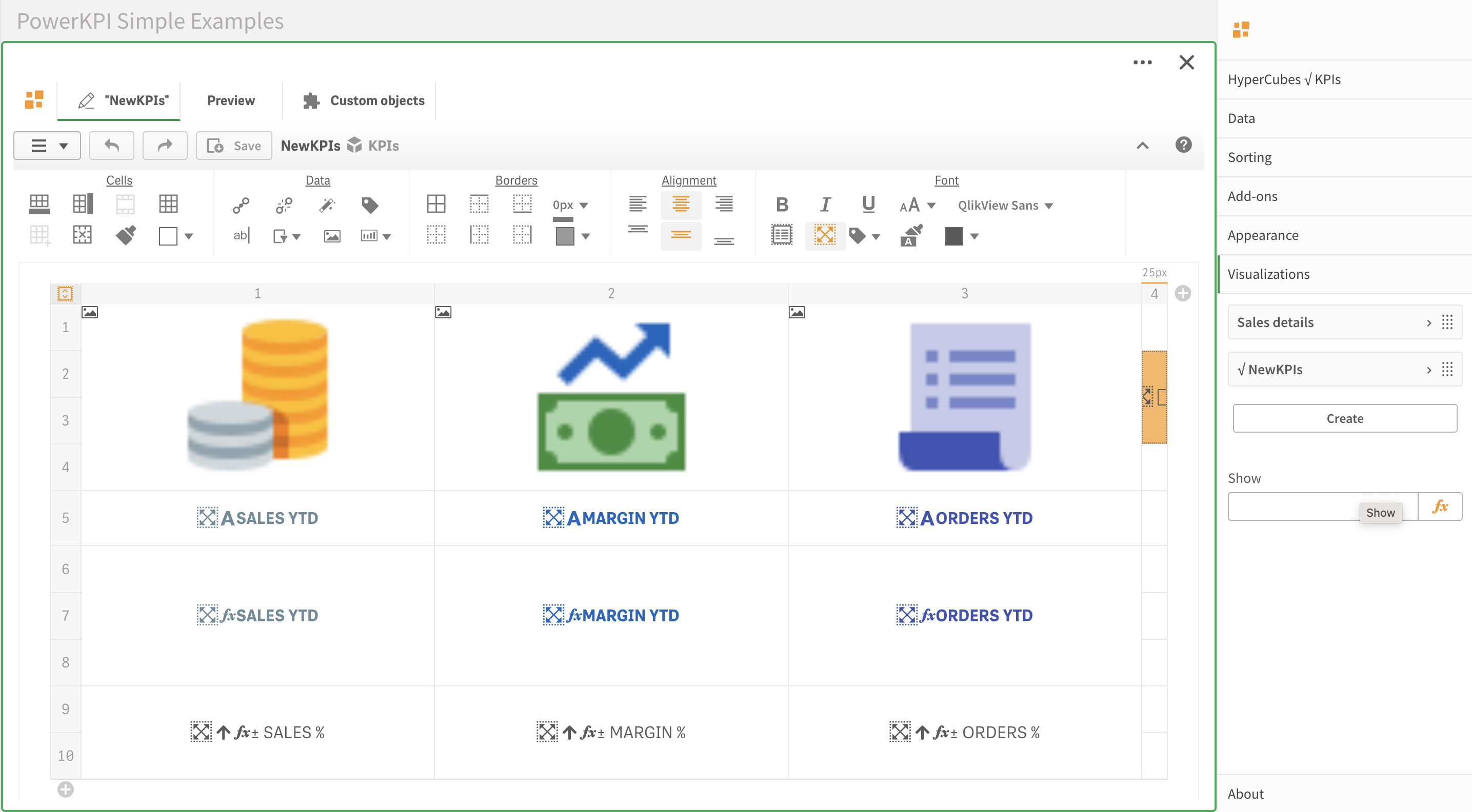 **PowerKPI for Qlik Sense** by **RBC GROUP** (see product page [powerkpi.rbcgrp.com](https://www.rbcgrp.com/en/power-kpi/) for more details) allows you to visually design responsive and interactive user experience for Qlik Sense: from simple KPI dashboards to interactive detailed list-like, table-like or card-like views.